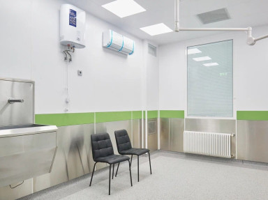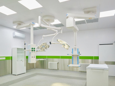 В новом корпусе размещено отделение реанимации, рассчитанное на 8 коек, включая 2 специализированные палаты - ламинарная для онкогематологических больных и 1 – для инфекционных, а также три просторные операционные и противошоковая палата для оказания экстренной помощи.